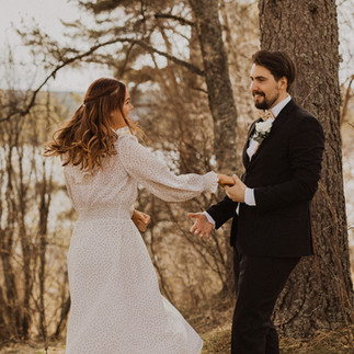 I början av maj gifte sig Martina och Victor och jag fick hänga med i ett par timmar för att föreviga deras fina dag. Till en början hade de tänkt ha ett stort bröllop senare i år, men då skulle det krocka med deras husköp så de bestämde sig för att ha ett litet bröllop redan i maj istället. Sedan kom Corona och vände upp och ner på allt, men deras planer kunde ju faktiskt fortgå med bara några justeringar. Trots att det var den 16 maj så hade våren precis börjat komma igång, gräset var fortfarande brunt och träden hade bara små knoppar. Jag älskar dock den färgskalan så det var bara fint tycker jag! Vi möttes upp innan vigseln för att fota first look och porträtt. Solen kom precis fram så det var faktiskt en härlig vårdag.