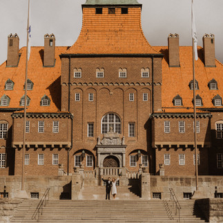Sen var det dags att åka och gifta sig! De hade en borgerlig vigsel i Rådhuset tillsammans med närmsta familjen och några vänner. En fin stund i en vacker byggnad. När vi kom ut efter vigseln så hade det börjat snöa lite, men vi körde på ändå med rökbomber och fick riktigt härliga bilder.