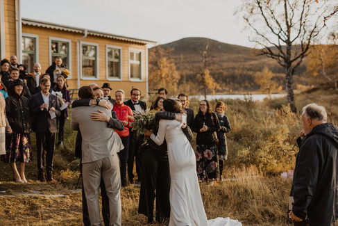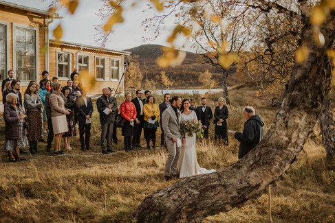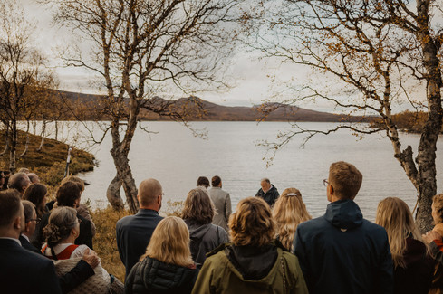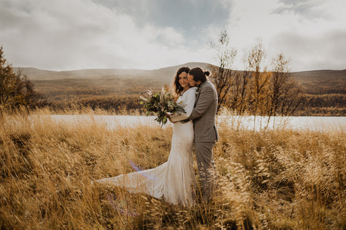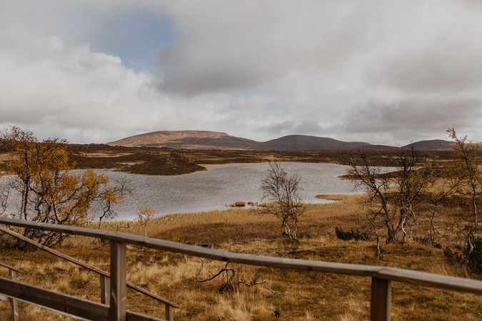 I september åkte jag till Fjällnäs Högfjällshotell för att fota Johanna och Magnus höstiga bröllop. De hade från början tänkt fjällvandra tillsammans med alla deras gäster upp till en stuga för att ha en utomhusvigsel där, men då vädret ställde till det lite så fick de tänka om. Istället bestämde de sig för att ha en utomhusvigsel utanför hotellet, men planerade ändå in att de som ville kunde ta en fjällvandring upp till stugan för lite fika, för att sedan gå ner igen för att göra sig i ordning för vigseln. På så sätt kunde de ändå ha med vandringen, något de älskar att göra, på deras bröllopsdag.