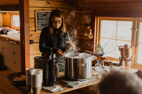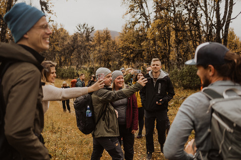 Det var jättemånga gäster som ville haka på och tillsammans gick vi upp till fjällstugan, hade en mysig fika och sedan vandrade alla ner igen för att duscha och göra sig i ordning för kvällen. När vi kom ner fotade jag när Johanna och Magnus gjorde sig i ordning och därefter hade vi porträttfotografering i det mest magiska ljuset jag varit med om! Hela Fjällnäs pryddes av höstiga färger, samtidigt som himlen skiftade i mörka regnmoln och gyllene solljus. Det var helt makalöst och dessa bilder kommer nog vara mina favoriter i lång tid framöver.