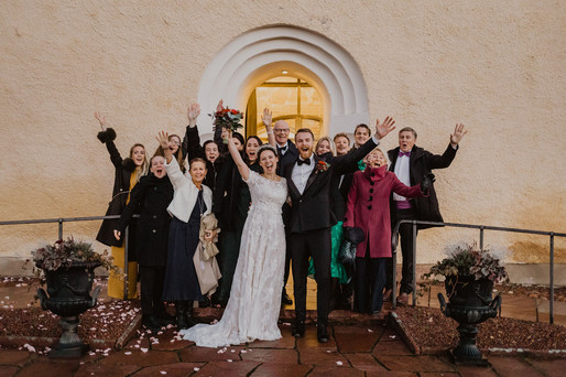 Vigseln var jättefin och vi hjälpte dem även att livesända allt via Facebook för de gäster som inte kunde komma. Hannah är från Australien så det var släkt och vänner från olika delar av världen som satt och tittade på, så fint att de ändå kan vara med på något sätt! Vi hann precis fota det allra sista utanför kyrkan innan mörkret la sig och när gänget åkte tillbaka till hotellet för en härlig bröllopsmiddag rullade jag och Markus hem igen.