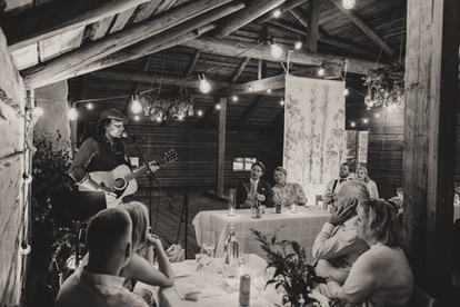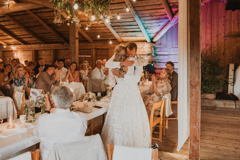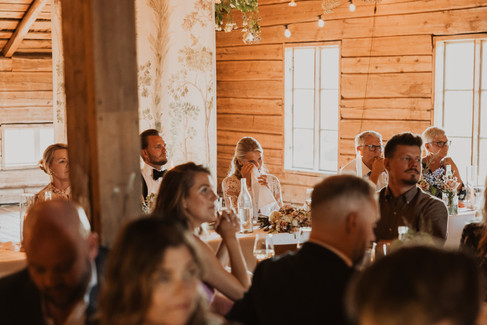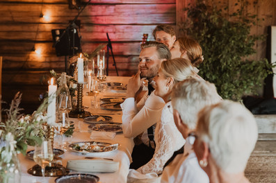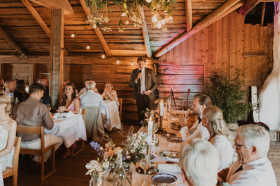 När det var dags för middag välkomnades alla in till ladan som de hade fixat så himla fint. Det bjöds på tal, massa skratt, tårar och kärlek, buffé (perfekt för en lite mer avslappnad stämning under middagen) och festlig stämning.