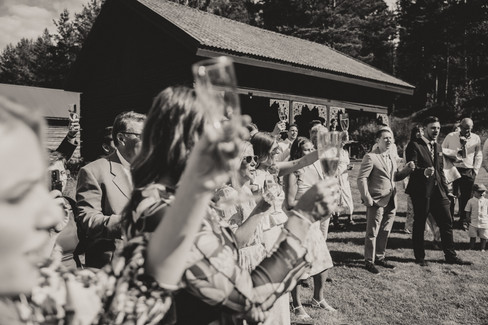 Under minglet fick alla gå runt på gården, dricka lite bubbel och snacksa i solen. Perfekt att kunna ha minglet utomhus om vädret tillåter. Det brukar oftast också passa ganska bra att fota gruppbilder med familj och vänner eftersom alla är där och det inte händer något speciellt som man inte får missa.