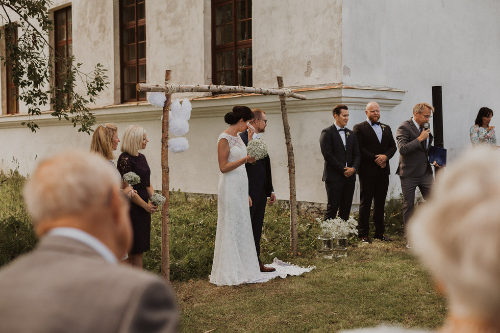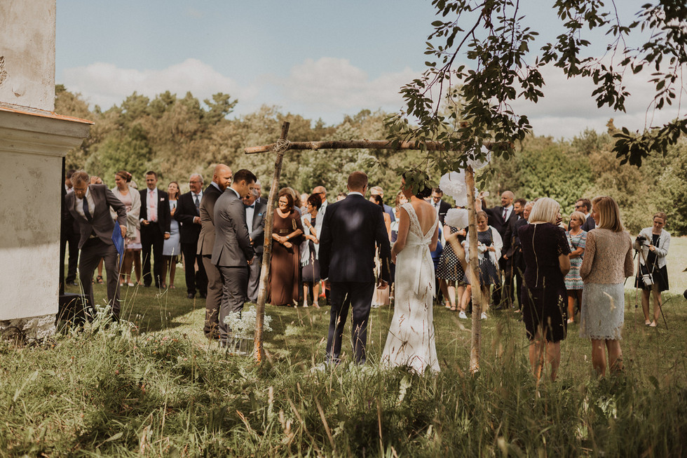 ↠ Ni behöver inte stå med ryggen ut mot gästerna som i kyrkan, stå hellre så att ni kan se alla som är där för att fira er.
