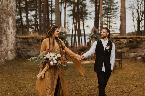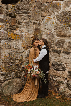 Detta vill jag gärna inspirera till och drog därför ihop en fotografering tillsammans med Florist Kirsten, Anna Göran Design och Sandra och Jonas som agerade brudpar. Jag och Kirsten dekorerade Sunne kyrkoruin som ligger strax utanför Östersund med gamla stolar, gardiner, blommor, lyktor och annat smått och gott för att få en mysig hemmakänsla på den vackra platsen. Med det dukade bordet ville vi visa att det ju även går att fortsätta bröllopet utomhus hela kvällen (så länge vädret tillåter förstås!).
